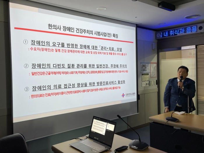지난 8일 이룸센터에서 열린 '한의사 장애인 건강주치의 시범사업 추진 간담회'에서 허영진 대한한의사협회 부회장은 발제를 통해 '한의사 장애인 건강주치의 시범사업 모델'을 공개했다.