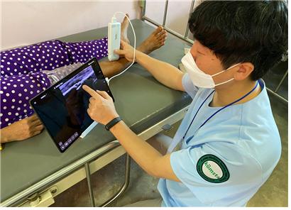휴대용 초음파 진단기기 활용한 진료 필자는 한의사로서 2015년부터 초음파 진단기기를 진료에 보조적으로 활용해 왔으며, 최근 한의사를 위한 휴대용 초음파 진단기기(아큐비즈 포켓·FCU)가 개발돼 이를 대한한의사협회측으로부터 대여받아 이번 의료봉사활동에 적극적으로 활용코자 했다. 내원 환자 진료에 초음파 진단기기를 활용했던 실제 사례들을 소개한다.