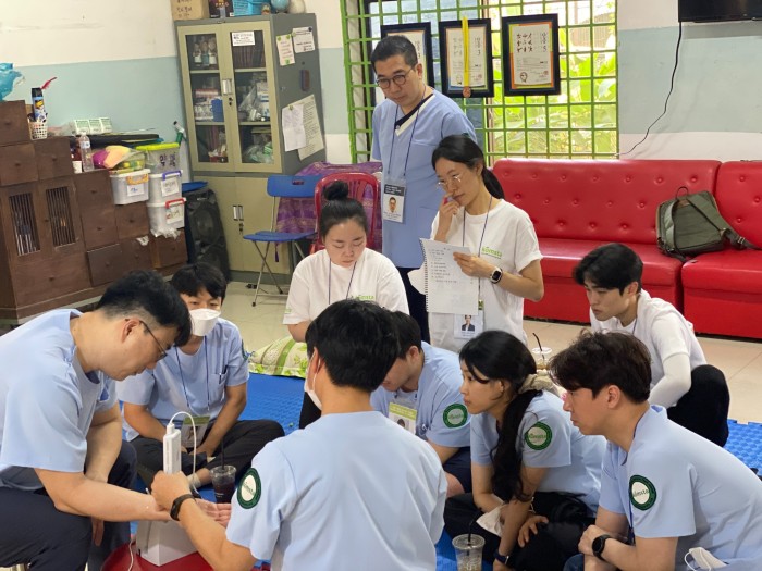 오승윤 우석대 한의과대학 조교수(사상체질의학과 전문의)대한한의약해외의료봉사단(단장 이승언·이하 KOMSTA)은 1998년부터 현재까지 10차례에 걸쳐 캄보디아 의료봉사활동을 시행해왔다. 이번 제163차 KOMSTA 단기 해외의료봉사활동팀은 한의사 8명과 일반봉사자 9명으로 구성돼 지난 22일부터 28일까지 캄보디아 바탐방 지역에서 한의약봉사 활동을 실시했다.