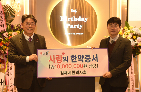 김해시한의사회(회장 유석, 이하 김해시분회)는 지난 11일 김해시 소재 더파티에서 1000만원 상당의 사랑의 한약증서를 김해시에 기탁했다. 사랑의 한약증서를 받은 김해시보건소 방문건강팀은 관내 저소득층, 독거노인 등 50명을 선정하고, 쿠폰 발급을 통해 가까운 한의원에서 20만원 상당의 진료와 한약을 지원하게 된다. 유석 회장은 “경제적 어려움을 겪고 있는 이웃들의 건강관리에 한약증서가 조금이나마 도움되길 바란다”고 전했다. 홍태용 김해시장은 “건강한 지역사회를 위해 앞장서고 있는 유석 회장님을 비롯한 회원들에게 감사드리며 사랑의 한약증서를 소외된 이웃들에게 잘 전달하겠다”고 밝혔다. 김해시분회는 지난 2010년부터 생활이 어려운 저소득층, 독거노인을 위해 사랑의 한약증서를 기탁해오고 있다. |