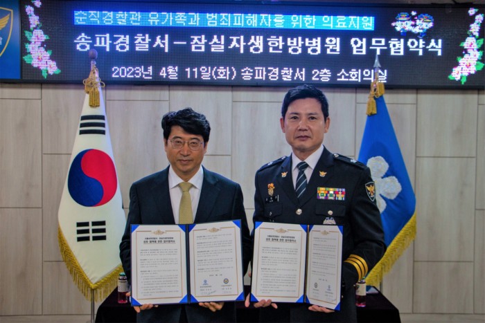 이번 업무협약은 송파서 관내 순직경찰관 유가족과 범죄피해자들이 의료기관을 통해 전문적이고 체계적인 의료지원이 필요함을 느끼고, 송파경찰서와 잠실 자생한방병원 간 상호 협의 하에 이뤄졌다.
