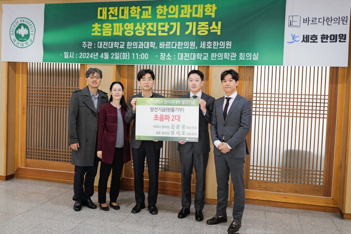 대전대학교 한의과대학(학장 박양춘)은 2일 대전대학교 한의학관 회의실에서 초음파 진단기기 기증식을 갖고, 이를 활용해 초음파 진단 교육 확산에 나서기로 했다.