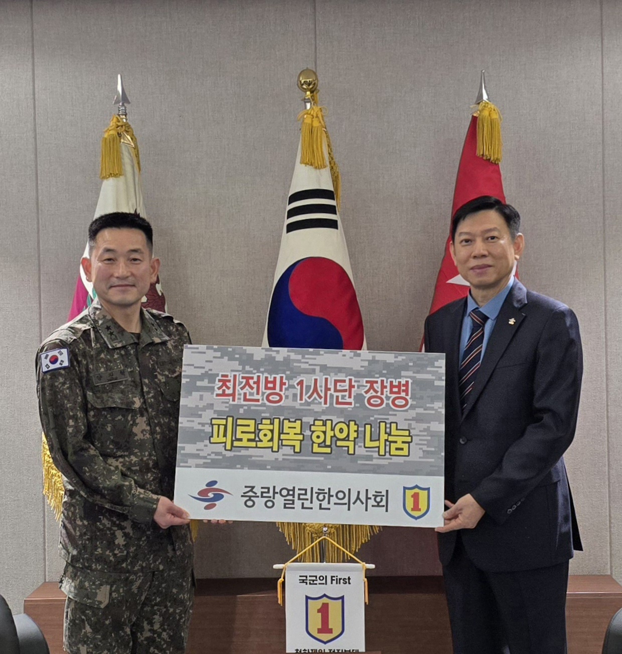 “‘천하제일 전진부대’ 국군 장병들께 감사의 마음을 전합니다”![]() 이준호 중랑열린한의사회 회장(이준호한의원장)은 22일 제1보병사단을 방문해 한약 기부 행사를 갖고, 군 간부 및 장병들의 건강 증진 기원과 국토 수호에 대한 감사의 마음을 전했다. 이처럼 이준호 회장이 1사단 국군 장병들을 위해 지속적인 한약 기부를 이어가고 있는 것은 부친(故 이동남)이 1사단 15연대장 재직시절, 군 장병들과 함께 지내며 느꼈던 감사한 마음이 가슴 한편에 자리잡고 있기 때문이다. 그의 부친은 재직 시절에 군 장병들의 마음의 평화을 기원하며 부대 내에 ‘백성사(百成寺)’를 건립하기도 했다. 1사단은 6.25전쟁 당시 평양에 선봉으로 입성한 부대이며, 현재는 북한과 휴전선을 경계로 대치하며 수도 서울 및 서부전선을 지키는 막중한 임무를 수행하고 있다. ![]() 양진혁 사단장은 “모든 군 간부들은 장병들과 혼연일체가 돼 민통선 주민 및 서울시민, 더 나아가 우리나라 국민의 안녕을 지키기 위해 혹한기에도 각종 훈련을 통해 만반의 전투태세를 갖추고 있다”면서 “군 장병들의 건강 증진에 많은 관심을 갖고 지원을 아끼지 않는 이준호 중랑열린한의사회장과 회원분들에게 깊이 감사드린다”고 밝혔다. 이에 이준호 회장은 “국가 안보와 국민의 생명을 수호하기 위해 밤낮없이 전투 준비 태세에 만전을 기하는 ‘천하제일 전진부대’를 응원하게 돼 매우 기쁘다”면서 “앞으로도 지속적인 의료봉사와 한약 나눔을 통해 국군 장병들에게 조금이라도 도움이 되길 기대한다”고 말했다. |