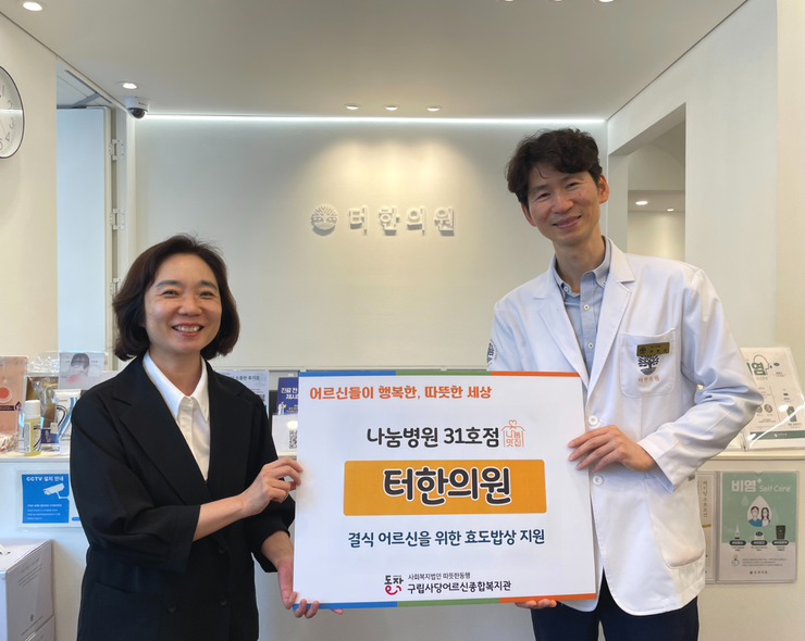 곽봉석 대표원장 “지역사회와 상생하는 의료기관 되도록 노력”![]() 사회복지법인 따뜻한동행 사당어르신종합복지관(관장 조희정)은 25일 터한의원 사당점(대표원장 곽봉석)과 함께 나눔병원 후원 전달식을 진행했다. 사당어르신종합복지관의 나눔병원은 결식 어르신이 없는 따뜻한 세상을 만들기 위해 정기적으로 후원에 동참하는 의료기관이다. 이날 곽봉석 대표원장은 “지역 어르신들의 건강과 복지 증진에 힘이 될 수 있어 뜻깊게 생각한다”면서 “앞으로도 지역사회와 상생하는 의료기관이 되도록 노력하겠다”고 말했다. 이에 조희정 관장은 “지역사회의 따뜻한 관심과 나눔이 어르신들에게 큰 힘이 된다”며 “터한의원 사당점의 지속적인 후원에 깊이 감사드리며, 앞으로도 어르신들이 건강하고 행복한 삶을 누릴 수 있도록 최선을 다하겠다”고 전했다. |